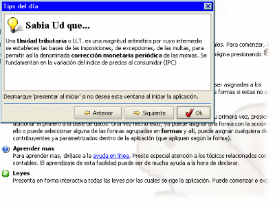 Ventanas de bienvenida y Tips informativos para que Ud. se mantenga informado.